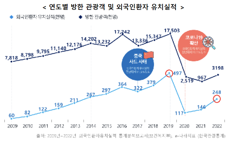 보건복지부에서는 “외국인 환자 유치(의료 관광)는 관광 등 다른 분야에 경제적 파급효과가 큰 산업”이라고 강조하며, “현장에서 정책 효과를 체감할 수 있도록 외국인 환자 유치 활성화 전략을 속도감 있게 추진하고, 지속적으로 소통하여 정책을 보완해 나갈 계획이다”라고 밝혔습니다.