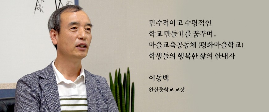 처음 완산 중학교를 왔을때 제가 죽 교직생활에서 꿈꾸던 이상적인 학교, 모든 구성원들이 함께 의견을 내고 교육의 자치가 이뤄지는 학교를 만들어 보고 싶었어요.