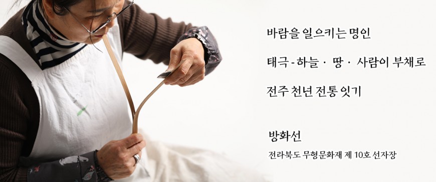 우리나라 부채는 형태상으로 크게 둥근 모양의 부채와 접고 펼 수 있는 접(摺) 부채로 나누는데 방화선 명인은 선자장 (태극선) 기능 보유자이다.