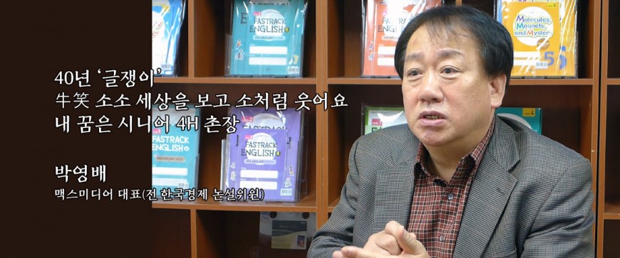 40년 ‘글쟁이’ 牛笑 소소 세상을 보고 소처럼 웃어요. 내 꿈은 시니어 4H 촌장 박영배 맥스미디어 대표(전 한국경제 논설위…