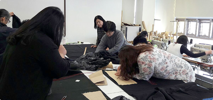전라북도여성교육문화쎈타 현대의상제작반을 거친 사람들의 모임 15명으로 구성된 바느질 10년이상 된 수준급 디자이너들... 이들은 매주 금요일 오전 모여 재봉틀을 돌린다.   이때는 몸이 아파서 병원에서 치료를 받는 사람들을 위한 두건 만들기 매년 5월에는 환경을 생각하는 사람들과 치러내는 리폼 패션쑈 여름에는 거동이 불편한 어른들 시원하게 보내시라고 만드는 간편복 가을에는 엄마의 품이 그리운 아이에게 보내는 놀이복.